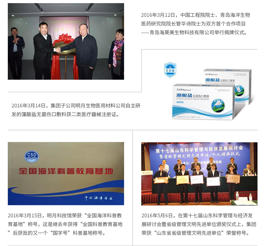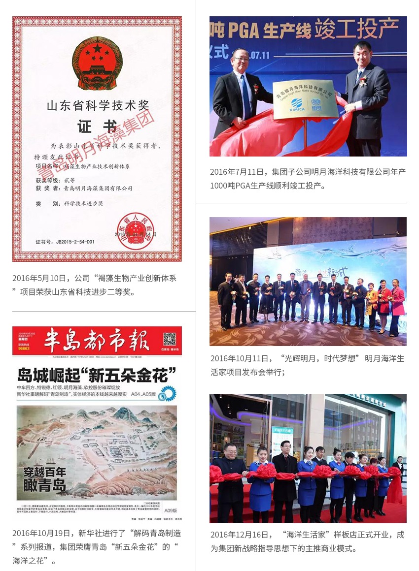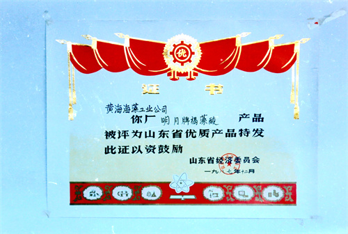 1985年10月,明月牌褐藻酸鈉被評為山東省優(yōu)質(zhì)產(chǎn)品。1987年,明月牌褐藻酸被評為山東省優(yōu)質(zhì)產(chǎn)品。