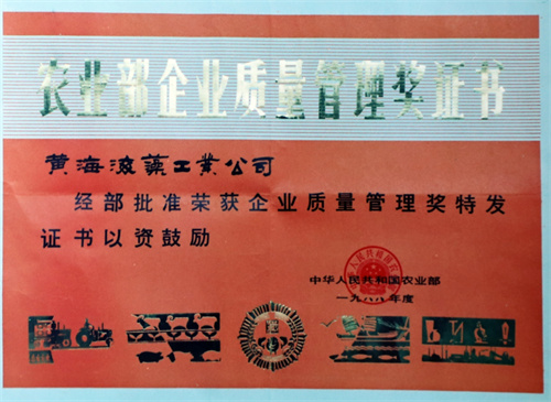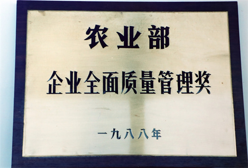 1988年10月獲得國家農(nóng)業(yè)部全面質(zhì)量管理獎。