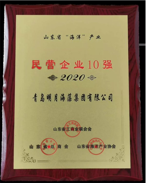 9月 明月海藻集團榮獲山東民營企業(yè)行業(yè)領軍10強、創(chuàng)新100強。