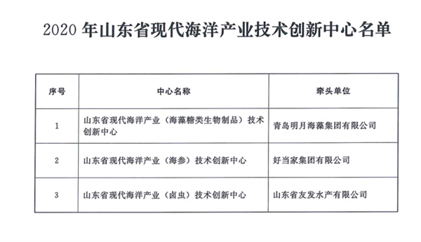 11月11日 山東省海洋局發(fā)布《關于2021年度山東省海洋科技創(chuàng)新獎獲獎成果的公告》,青島明月海藻集團榮獲2021年度山東省海洋科技創(chuàng)新獎產(chǎn)業(yè)創(chuàng)新發(fā)展類一等獎。