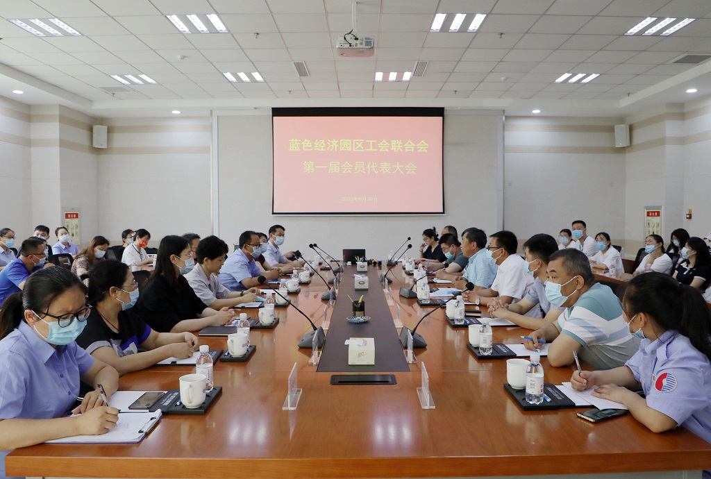6月30日 藍色經(jīng)濟園區(qū)工會聯(lián)合會成立大會在明月海藻世界召開。
