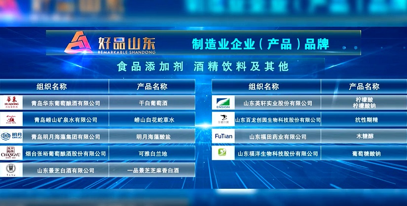 9月12日 "明月海藻酸鹽"入選"好品山東"制造業(yè)企業(yè)(產(chǎn)品)品牌。