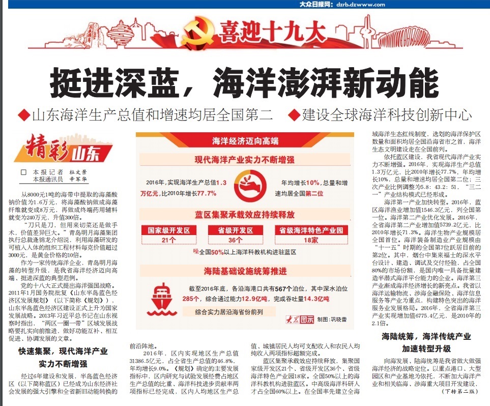 山東海洋生產(chǎn)總值和增速均居全國第二 2017-10-07