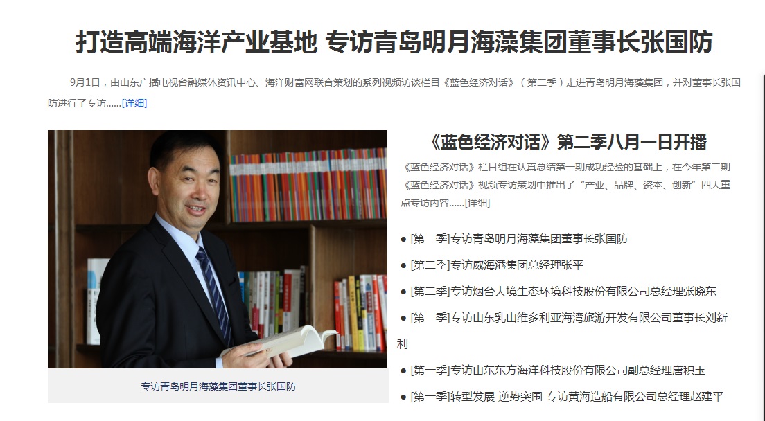 打造高端海洋產(chǎn)業(yè)基地 專訪青島明月海藻集團(tuán)董事長張國防 2017-09-02