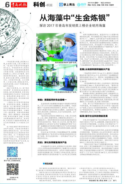 從海藻中“生金煉銀”| 探訪2017年青島市發(fā)明獎(jiǎng)上榜企業(yè)明月海藻 2017-10-17