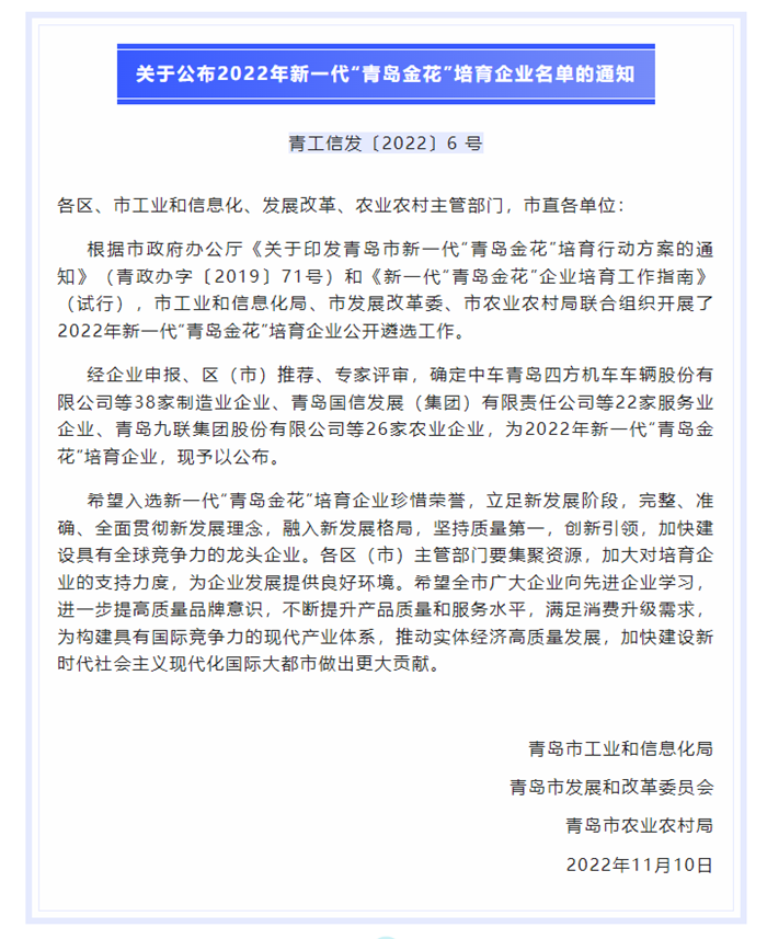 從這個意義上說,新一代“青島金花”承載的期望,就等同于海爾、海信、青啤、雙星、澳柯瑪這五朵“金花”。制造強國新征程,新一代“青島金花”必將挑起發展大梁。