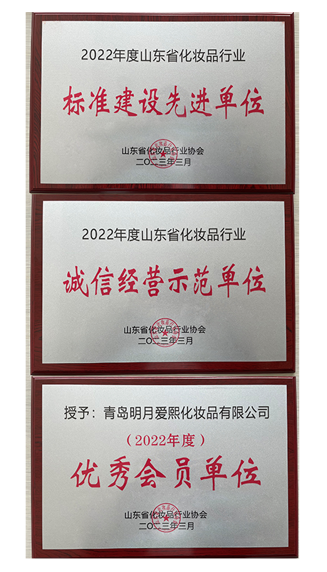 在本次大會上,青島明月愛熙化妝品有限公司斬獲“標準建設先進單位”、“誠信經營示范單位”、“優秀會員單位”三項殊榮。