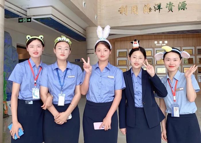 微笑服務(wù)、溫暖親切,她們的服務(wù)有溫度。春去秋來(lái),人來(lái)送往,在海藻世界,她們每天都會(huì)看到不一樣的臉龐。但是,唯一不變的是講解人員每天親切的笑容和溫暖的問(wèn)候。