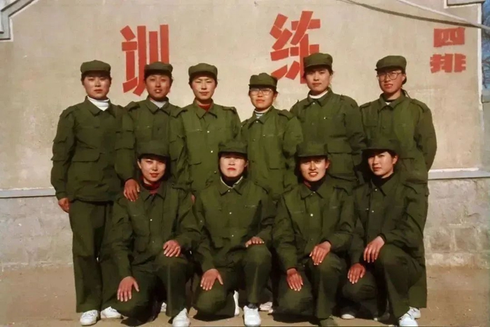 1990年代,參加軍訓的公司女職工