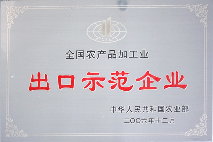 2006年12 月,國(guó)家農(nóng)業(yè)部授予明月海藻集團(tuán)“全國(guó)農(nóng)產(chǎn)品加工業(yè)出口示范企業(yè)”稱號(hào)