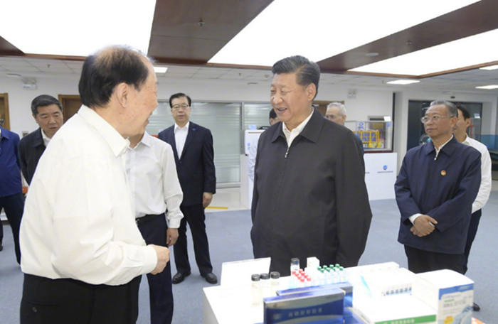 2018年6月12日上午,習(xí)近平在青島海洋科學(xué)與技術(shù)試點(diǎn)國(guó)家實(shí)驗(yàn)室,聽取了79歲的中國(guó)工程院院士管華詩(shī)關(guān)于海洋藥物研發(fā)情況的介紹。