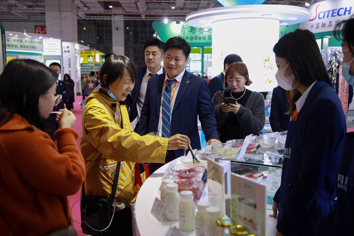 展會期間,明月海藻集團展區吸引了眾多觀眾的目光。現場,燕麥爆珠、紫米爆珠等產品熠熠生輝,晶球、魚子等產品更是交相輝映,香腸、丸子的香氣四溢,引得觀眾們紛紛駐足品嘗。專業觀眾及嘉賓們在試吃明月海藻的健康食品后,對其口感和品質贊不絕口,并就海藻健康解決方案展開了深入的交流與探討。