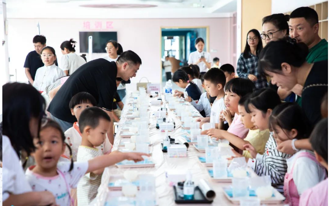 隨后,家長與孩子們在海藻健康舫共同制作了海藻手工皂。這一過程不僅讓孩子們體驗到了動手創(chuàng)造的樂趣,更讓他們深刻理解了健康、環(huán)保的生活理念,進一步加深了家庭成員之間的情感紐帶。許多家長表示:“這是第一次了解到海藻科學(xué),感受到科技的魅力與教育的意義。感謝工會及明月為我們提供了這樣一個難得的機會,也讓我們對海洋強國更有信心、更有底氣。”