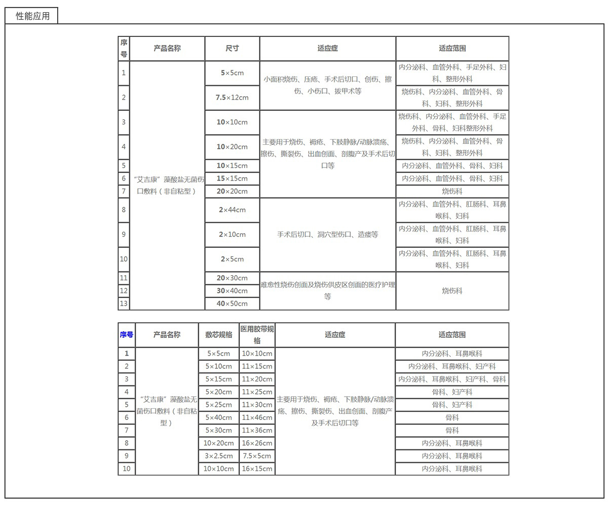 “艾吉康”藻酸鹽醫(yī)用敷料是一種由褐藻中提取的海藻酸鹽經(jīng)過(guò)濕法紡絲、無(wú)紡布加工、切割包裝、滅菌等工藝加工后制成的無(wú)菌醫(yī)用敷料,具有在吸收傷口滲出液后形成凝膠的獨(dú)特性能。“艾吉康”藻酸鹽醫(yī)用敷料通過(guò)為創(chuàng)面提供濕潤(rùn)的愈合環(huán)境加快傷口的愈合,對(duì)難愈性慢性創(chuàng)面的護(hù)理有良好的療效,其成膠性可方便將敷料從傷口揭除,對(duì)難愈性慢性創(chuàng)面的護(hù)理有良好的療效。